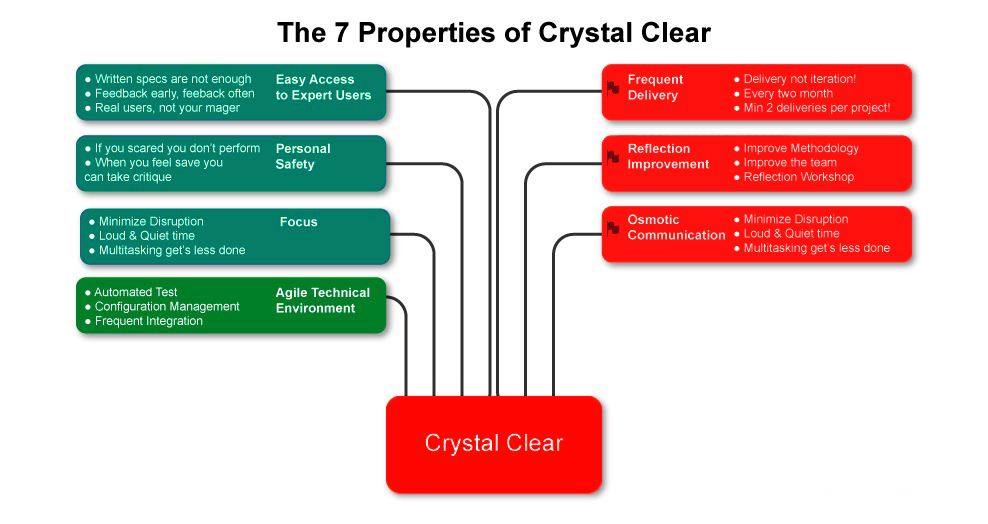 In Alistair words, “Crystal is a family of human-powered, adaptive, ultra-light, ‘stretch-to-fit’ software development methodologies.” This brings us to the characteristics of crystal methodology.